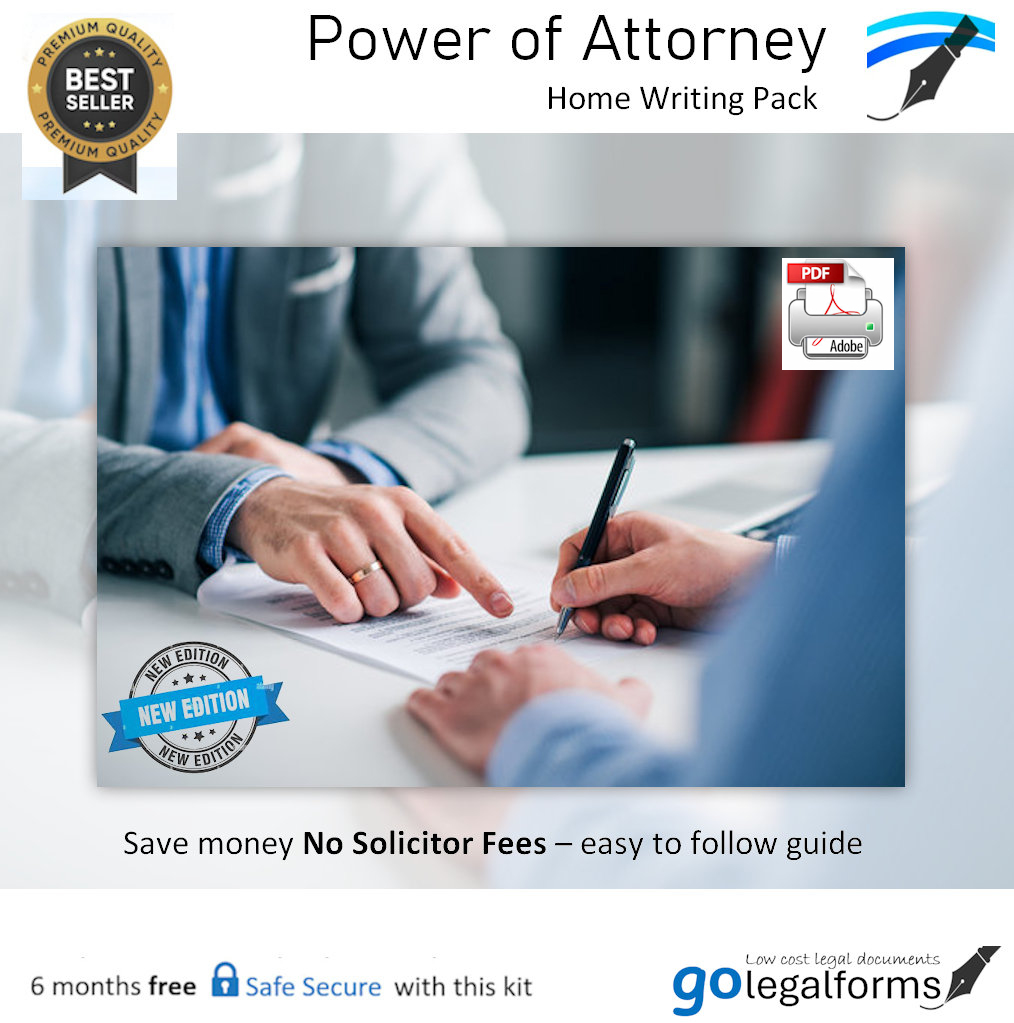 Our popular easy to complete Power of Attorney home writing pack comes with everthing you need to complete your forms with an easy to follow guide to help you complete your forms at home in your own time with no solicitor fees.